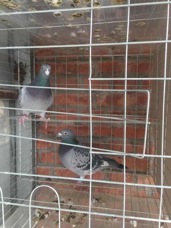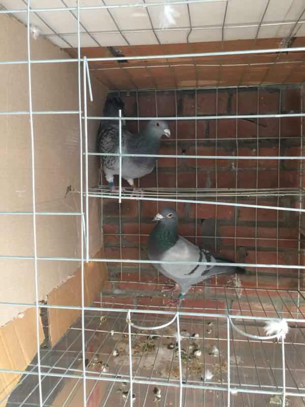 鸽子很好,建议用配对笼,这种铁丝笼太伤羽毛,漏风,光线亮,鸽子没有安全感。现在配对太早,最起码立春后或惊蛰配,鸽子状态好