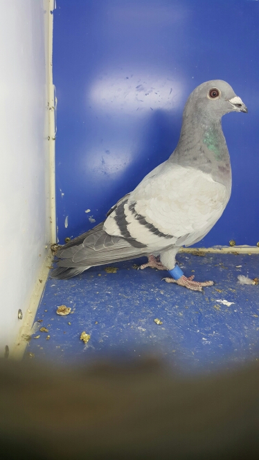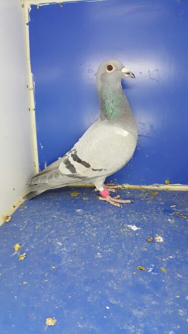 也想过比赛后才留用,可是又怕比赛中途的意外,错失了这一血统的鸽子。这两只鸽子小的(蓝色包环)那只跟大的(红色包环)那只母亲同辈,小的那只父亲是詹森019直系多重回血,母亲公棚成绩鸽子,血统胡本。此对经常出双雄,一般出母鸽时都留下直接做种了。