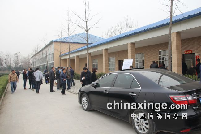 今天早上7时起,就有鸽友陆续前来现场看鸽子。至上午9时,公棚内外停满了车子,前来看鸽的鸽友达到了峰值,此时的公棚大厅内外挤满了看鸽的鸽友。