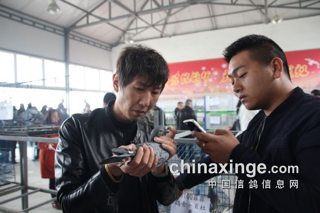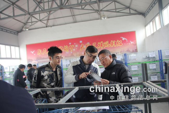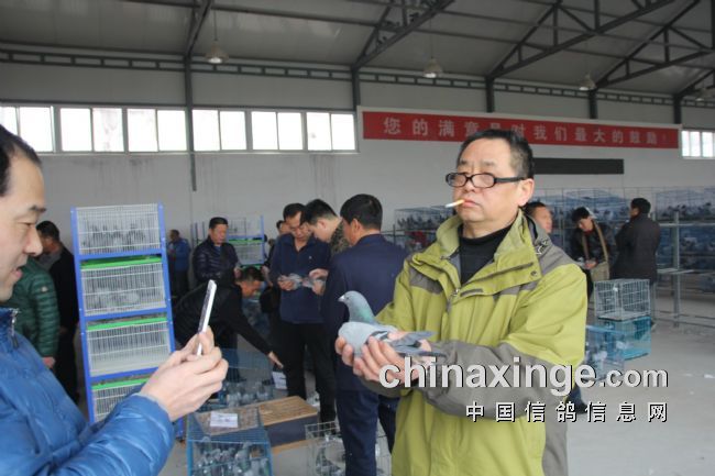今天到公棚看鸽除了外省市鸽友外,西安市的许多赛鸽高手也到了公棚现场,有阳光家园、孙拥军、田文革、京华鸽业、泰华鸽业胡氏兄弟、苏云峰、张加亮等等。还有的鸽友在给自己的每一羽鸽子照相,并且记下详细的笔记。据他们讲是为了比赛下炮打基础,一旦发现鸽子短训中表现好,就敢于下炮下注。