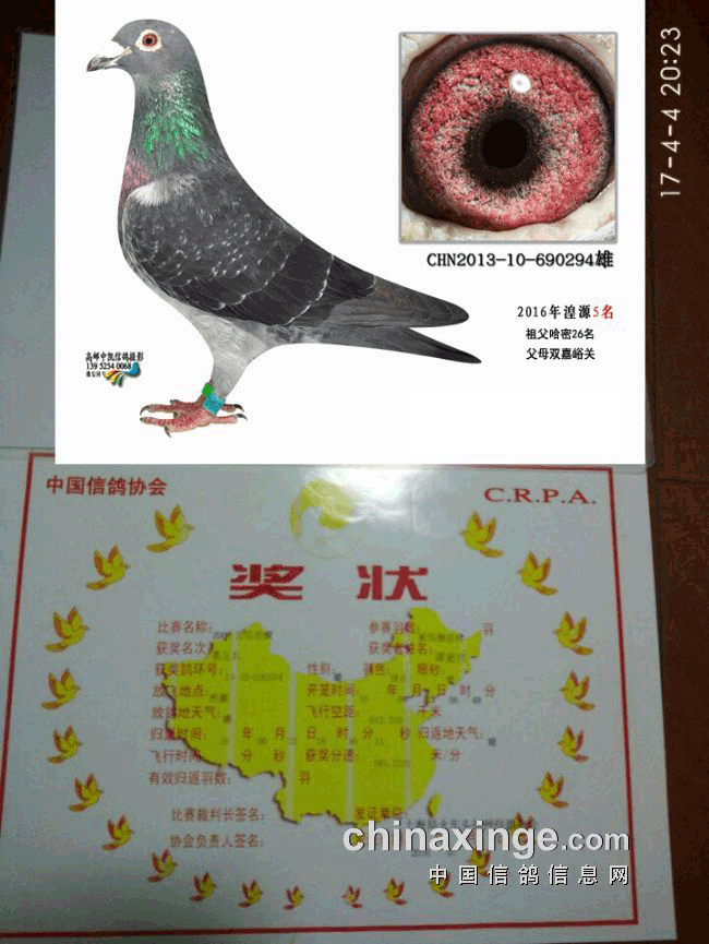 我是鸽主,需要交流的朋友可以加我微信T15262283966标题鸽子成绩事实,扬州火车头信鸽协会16年2000公里5名和十名(点更多)就可以看到成绩和图片。