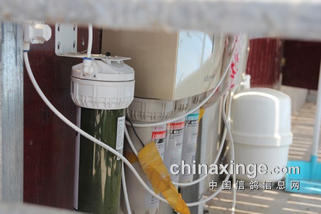 在鸽室内还安装了浴霸,这样在阴雨天可以调节鸽舍内干湿度外,关键是在短训或者比赛时鸽子被淋雨后能够迅速把鸽子羽毛烘干,避免鸽子伤风感冒。他们还安装了净水器,把城市的自来水再过滤后给鸽子直饮,确保鸽子饮水安全。