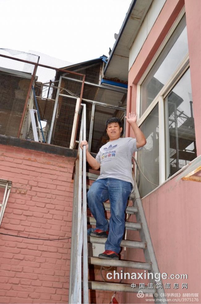 北京朝阳区东坝鸽友高红光先生在棚内。一个鸽舍内若能找到一个黄金配对,那也是不得了啊!