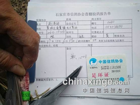 10月6日晨石家庄市天亚杯全市速度大联翔的各办赛单位赛鸽到达指定司放地。七点十五分钟左右翱翔俱乐部工作人员为了早点唤醒入笼赛鸽,在敲笼期间操作失误,导致该单位的两羽赛鸽逃笼。大赛组委为保证赛事公平、公正、公开,与现场各单位共同决议:翱翔俱乐部本次比赛所有赛鸽不能参与本次全市大排名!在此大赛组委会深表遗憾。