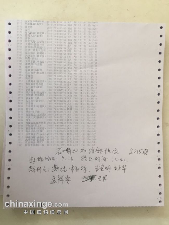 名次 鸽主 足环号 羽色 分速 时间