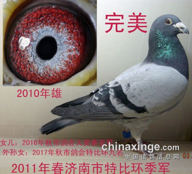 2017年秋季济南市大奖赛冠军;2016年秋季济南市大奖赛亚军;过去大小鸽会、俱乐部获13个冠军,前十名多多,公棚也每年获奖高位、指定鸽季军等。他必有独到之处,他介绍说:养鸽必须重视血统,并考虑个体的优劣,优势互补,稳中求快,他主要是砂眼配砂眼;黄眼配黄眼。他不仅中短距离获奖,远距离也行,这在现今的鸽界比较少了,奖杯在储藏室内堆着,也是比较特别的鸽友。平时朋友也多,好鸽借出外地朋友也成绩突出,有一年我们一同公棚探视归来,他提着一个笼子,里面放着一只鸽子,我问是探视拿回的鸽子吗?他讲:是借到朋友处用了两年的鸽子,探视给捎回的。该鸽回来就育出2016年秋季济南市大奖赛亚军……