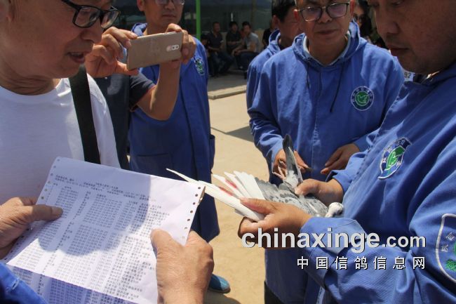 省鸽会裁判对前十名鸽子在现场刮开密封条、检查暗章、核对信息