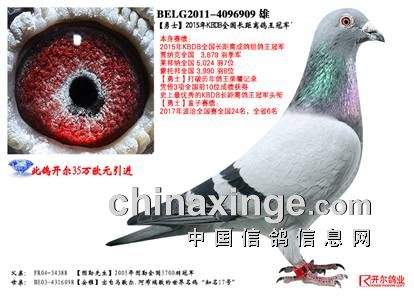 2015年KBDB全国长距离成鸽组鸽王冠军“勇士”