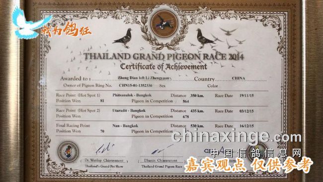 好像在泰国公棚有成绩,以前也有成绩,很多年不飞只育种了吧。