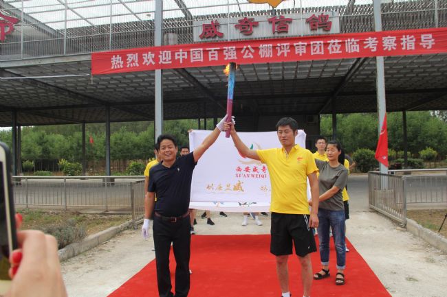 圣火有由西安爱丽丝技术总监王震和西安威奇赛鸽公棚董事长王宏超共同点燃圣火,并有六位代表进行火炬接力传递。场外观众给予掌声和呐喊声,为中国鸽友加油!共同祝愿西安威奇公棚发展更快、更高、更强,祝愿中国鸽坛“奥运”圣火传递暨中国百强公棚评选万里行活动取得圆满成功。