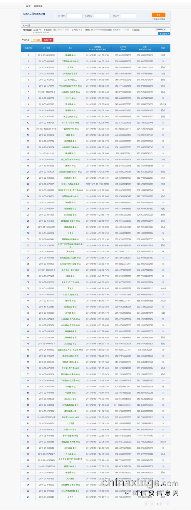 天津一公棚遭遇黑色星期五,这家公棚10月19日进行520公里决赛,在河南开封放飞5662羽,从公棚发布的放飞现场视频来看,开笼时晴朗无雨,鸽群走势正常,比赛当天沿途也是一路天晴。然而等到下午15:43:39才见第一羽赛鸽归巢,分速不到1000米/分,当日仅归74羽。10月20日有赛鸽零星归来,截至到20日18点整,共计归巢349羽,未报满决赛获奖名额(取前700名)。