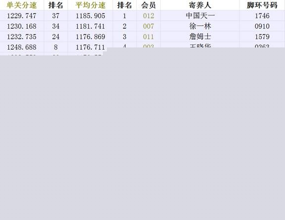 灵峰今年的秋赛,共有十八个职业团队参加,可以说是群雄荟萃。赛场风云变幻,谁都有摘金夺银的可能,从本关比赛来看,入赏前五的鸽友,在前几关赛事中,大多排名并不靠前,可见灵峰高手众多,一个微小的差距,就会导致榜单的大幅变化,这也使得比赛更显激烈和有趣。第一关500KM和第二关530KM均遭遇东南风,赛鸽顶风而飞,而第三关连续阴雨过后放晴,气温骤降,距离增至550KM,可谓是挑战一关接着一关。目前三关战罢,来自12号棚的中国天一足环号为1746的赛鸽拿下三关综合冠军,同为该团队的1745拿下了综合8位。来自7号棚的0910,以第一关32名、第二关100名、第三关24名的稳定成绩占据三关综合排名第二的位置。而今年轰动整个鸽界的詹姆士名下的1579以第一关36名、第二关95名、第三关24名的成绩紧随其后,位列三关综合第三。不得不说,对灵峰的最后一关比赛更加期待了。到底最后桂冠花落谁家?且看下周分解。