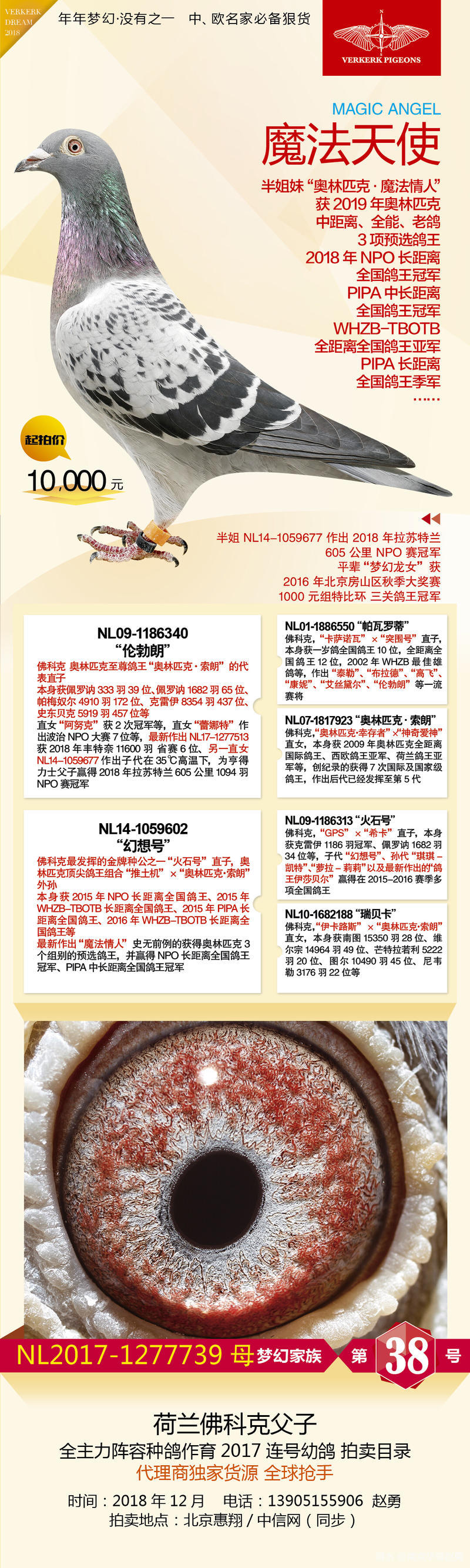 本次拍卖会中“奥林匹克·魔法情人”的平辈有:第38、39号拍卖鸽。