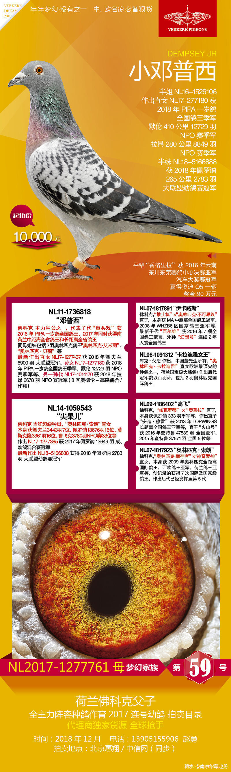 本次拍卖会中“邓普西”的子代有:第59、60号拍卖鸽。