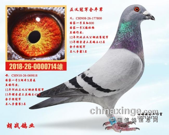 胡战鸽业赛鸽在本群拍卖多年,使翔者遍布祖国大江南北,四面八方,助很多鸽友取得了一个又一个优异成绩,有的还夺得鸽王冠军和特比环冠军,因此,胡战鸽业的赛鸽一直受到鸽友的追捧。本次,2019年新年拍卖,又拿出了几羽重量级的优秀赛鸽来鸽友群里交流拍卖,必将再起热潮!