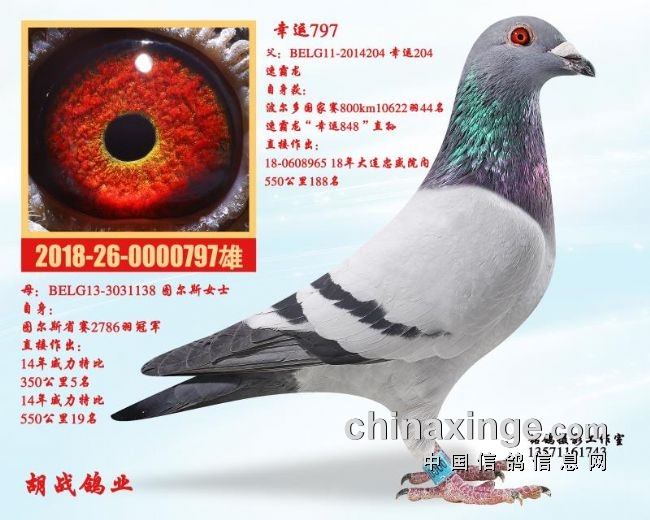 胡战在欧洲走访了十几天,参访了15家鸽舍,拜访了贺伯特等名人高手,看了世界大铭鸽和优秀赛鸽,同时引进了20多羽大铭鸽和优秀赛鸽。目前,这些新引进的大铭鸽有的已经作育出了子代,2019年必将参赛亮剑。现在,胡战先生值新年之际,再次拿出几羽优秀赛鸽在我群里分享交流,看谁有缘,谁先得。