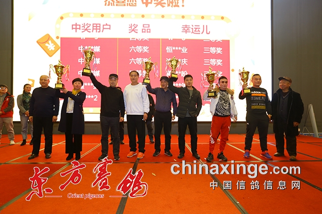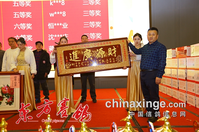 在颁奖现场,爆灯鸽药和西安爱丽丝鸽药向获奖的鸽友赠送了大礼包,中国信鸽信息网向与会嘉宾送出了666元的大红包,新农之光鸽药也向现场的鸽友赠送了礼品。