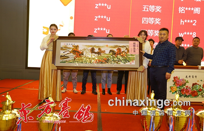 爆灯鸽药仲学峰总经理向获奖鸽鸽友赠送大礼包、西安爱丽丝鸽药王新萍总经理,西农之光李总为获奖鸽友颁奖并赠予小团体前10名获奖鸽友爱心鸽药