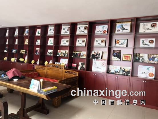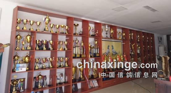 李国民鸽舍坐落于北京市大兴区桦宇轩农业生态园内,占地面积80余亩,园内中式风格建筑,进入办公室即看到一整面的奖杯墙,这都是赛鸽人的荣誉勋章,另外两面墙上这是与国外名家佛布鲁根·戈马力、林波尔等人的合照以及一些铭鸽照片。