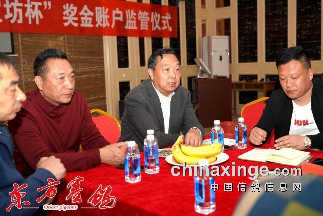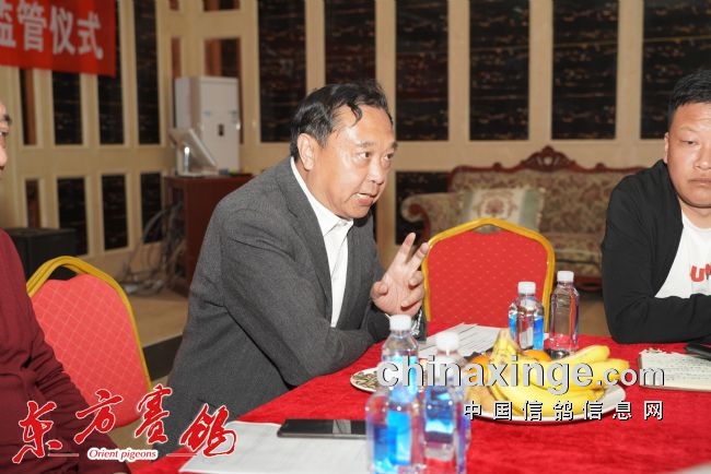 在会上俱乐部董事长赵凤琦说,我今天在没有向每个参赛团队收取任何参赛费的情况下,先预存五百六十万元资金并冻结到十月底作为奖金,这是表明我本人对所有参赛团队的信任,更是下定了决心竭尽全力做好今年秋季各项赛事工作,为比赛护航,同时也希望每一个参赛团队和鸽友都能共同遵守赛事规程,我是以心换心,用自己的诚意换取每一个参赛鸽友的真诚,使信鸽事业真正成为绿色、和平、健康的事业。