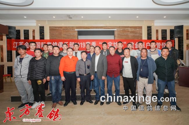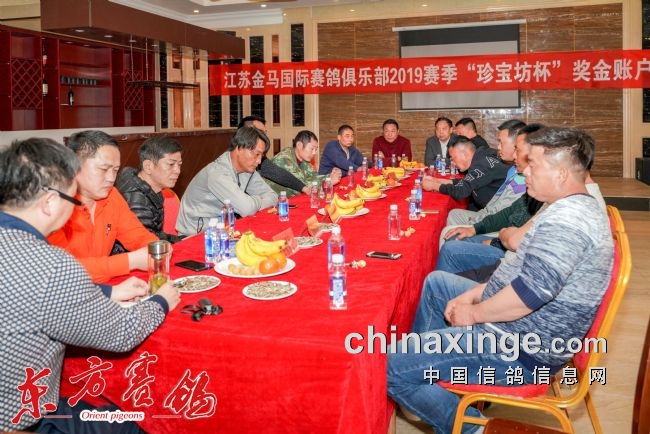 为了让各参赛团队见证赵总存储比赛奖金一事,江苏金马国际赛鸽俱乐部于2019年4月6日下午,在俱乐部的会议室举行了奖金账户监管仪式。江苏省信鸽协会副会长、南通市信鸽协会会长周克平和秘书长袁国祥先生,泗洪县信鸽协会会长张晓东及各参赛团队的团长,教练员均到场共同作了见证人。