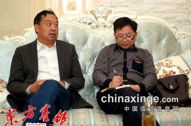 江苏金马国际赛鸽俱乐部董事长赵凤琦(左)和东方赛鸽杂志主编段衷海