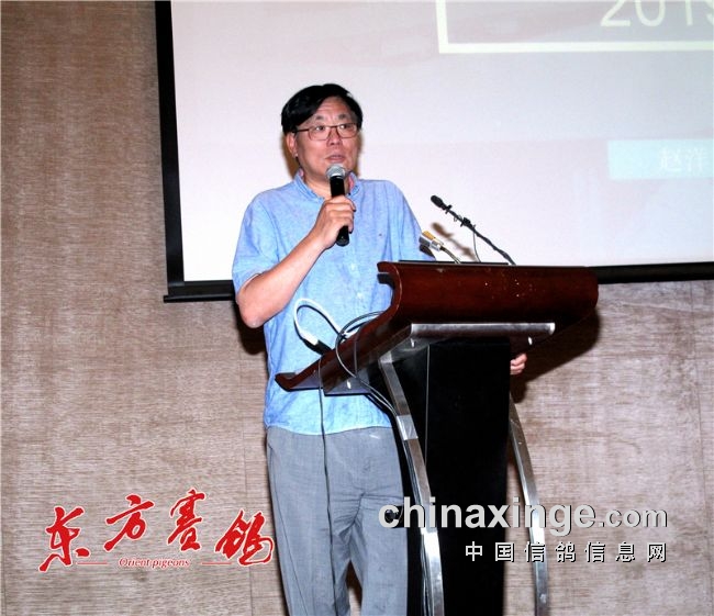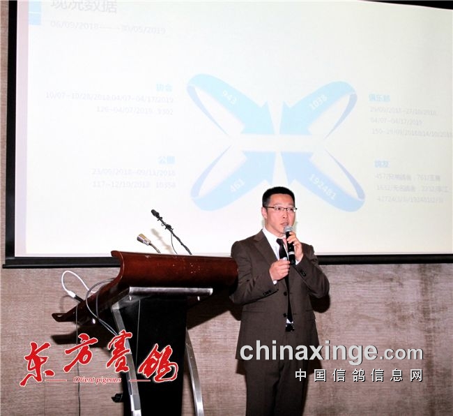 ▲国际鸽联副主席、中国信鸽协会代主席、秘书长邢小泉作重要讲话