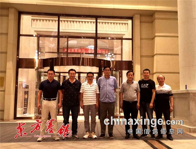 ▲中鸽协代主席兼秘书长邢小泉(中)副主席宋智海(右三)科汇公司董事长赵洋(左一)合影