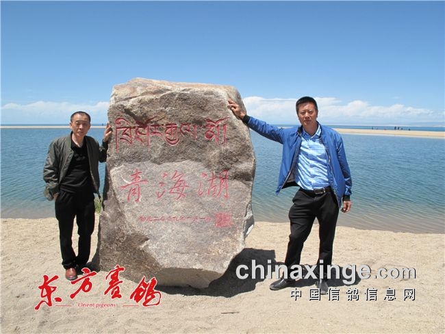 ▲贵阳市鸽会会长王权(左)贾明伦(右)青海湖畔留个影