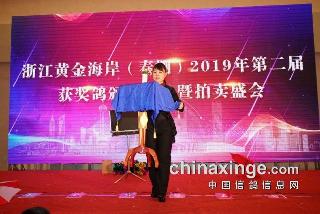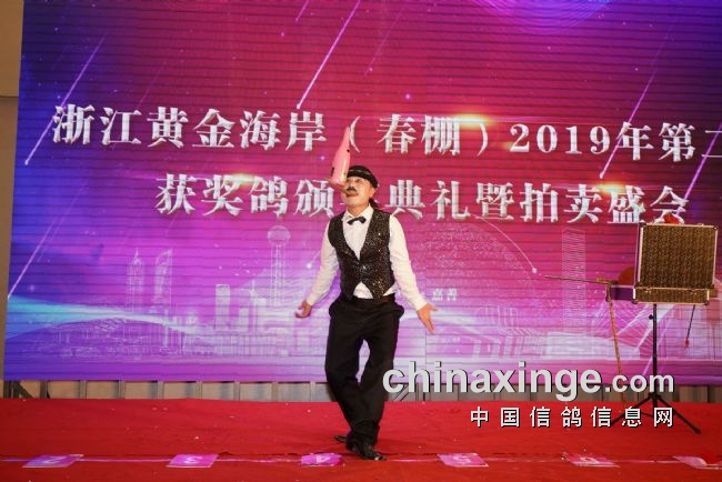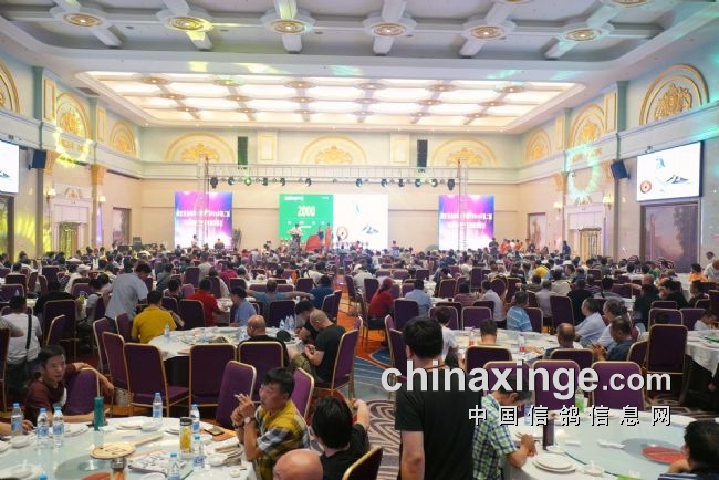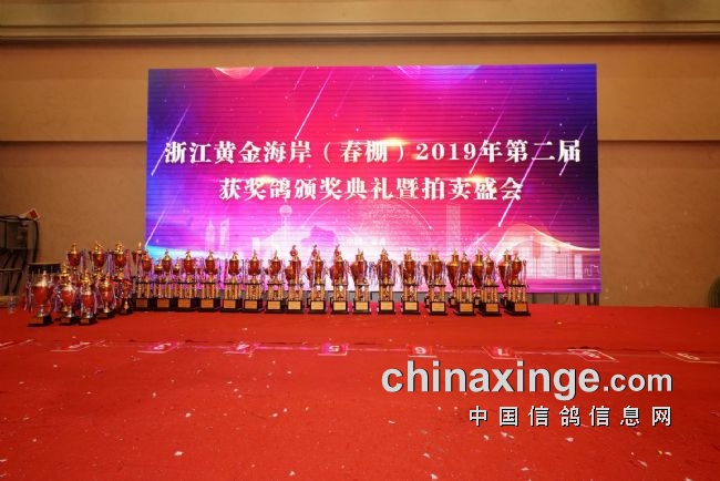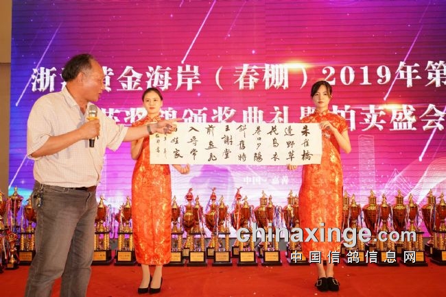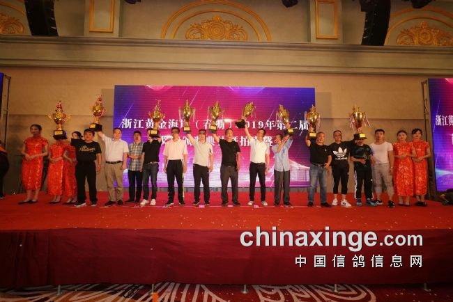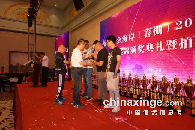 千年大运河从江南名城嘉善县穿过而过,运河两岸四季风情皆茂。6月28日中午,全国各地的赛鸽强豪名家相聚在千年大运河畔的罗马天豪宴会中心三楼宴会厅里,拉开了黄金海岸拍卖与颁奖大会的帷幕。下午拍卖了决赛200名至冠军的优胜鸽,好鸽受追捧的场面让人热血沸腾。29日全天则将拍卖201名至600名的获奖鸽。 我们将拍卖的故事暂且放一放,先说一说颁奖的盛况。