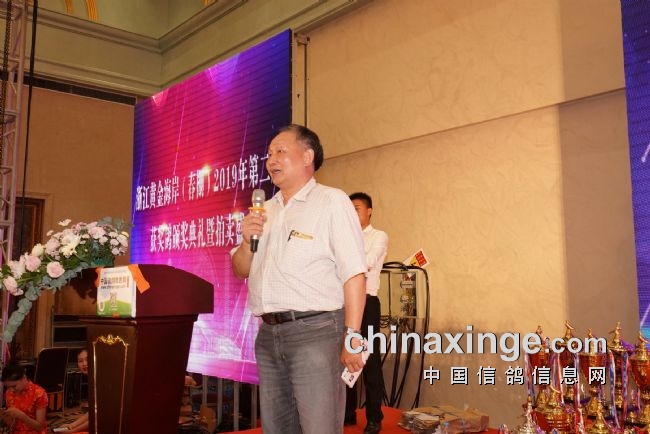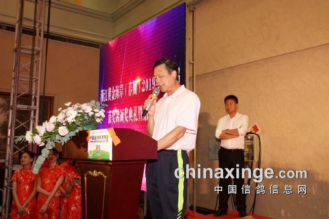 接着浙江省信鸽协会秘书长郑启兴致辞。他说,首先代表省鸽会和省公棚监赛小组欢迎各位嘉宾的到来。向黄金海岸春棚圆满结束本赛季的赛事表示热烈祝贺,也向取得成绩的鸽友表示热烈祝贺。黄金海岸作为我省的唯一春棚,省鸽会及公棚监赛小组依照公平公正公开的原则派出了国际级和国家级的裁判,对公棚的清棚及比赛进行了全程的监督。