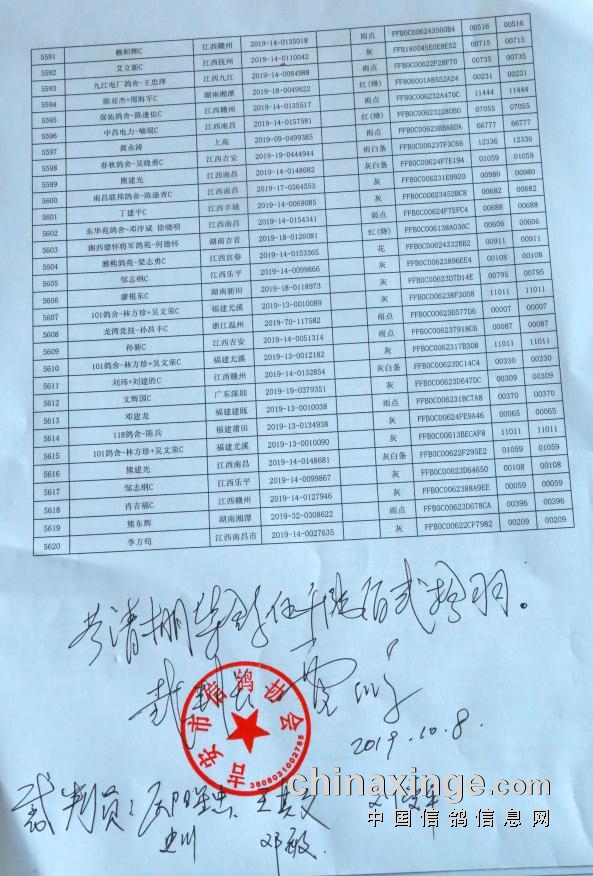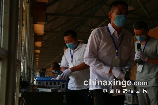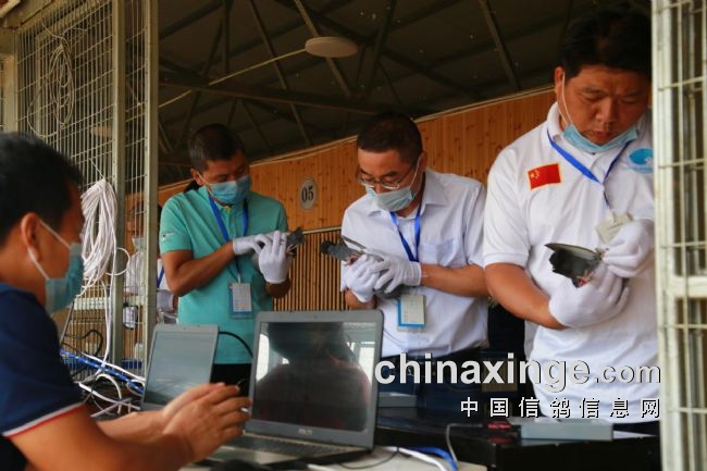 10月8日,江西井冈山国际赛鸽中心进行了首届清棚工作,江西省信鸽协会裁判委员会副主任、抚州市信鸽协会裁判长贾鹏带队参加清棚执裁工作,执裁组对参赛鸽逐羽扫描清棚,确认参赛鸽信息,并更换失效电子环,总计检录上笼5620羽参赛鸽。