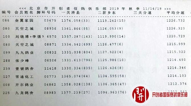 2019年“中国杯”信鸽职业联赛(开创者站)开创者(北京)“铁鹰四关”鸽王大奖赛第二关560公里的比赛11月13日早上7点18分在河南新乡东开笼放飞。金翼家园的一羽环号为03475的赛鸽以第一关1374.058米/分,第二关1119.242米/分的优异成绩取得了一二关的两关综合冠军。