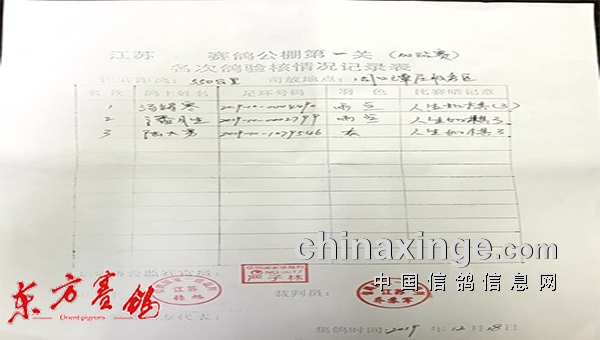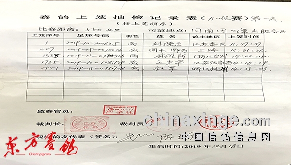 云外的勇士还真没让鸽友失望:下午15点40分左右,首批11羽云外英雄战鸽穿云破雾凯旋归来,鸽坛前辈、无锡名家汤锡寒麾下悍将、环号为10-0004490的雨点于15:40:37.218捷足先登摘取桂冠,分速为1193.1884米;江苏南京鸽的船人-潘胜名下大将、环号为10-0002799的雨点接踵而至喜获亚军;江苏姑苏城的鸽友陆大男+杨兆麒名下战将则将季军收入囊中。