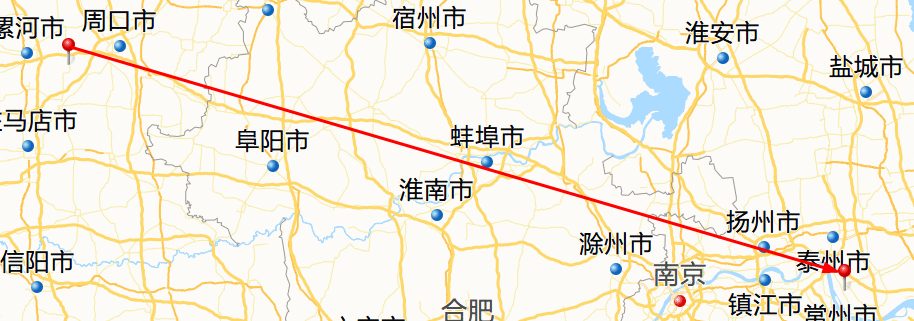 第一关河南谭庄服务区,空距为550公里,第二关河南宁陵服务区,空距