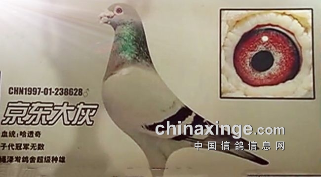 父鸽,雨点雄,哈透奇詹森。它是“大狼”的直女交配德国鸽王“742”所出。“大狼”出自京东名家樊克华鸽舍,不仅本身多次冠军,其后代更是获奖无数。“大狼”的父鸽是名家绳泽发振棚种雄“京东大灰”,这只神奇的种雄出自荷兰“不朽的帝王—哈透奇詹森”,可谓是根正苗红!