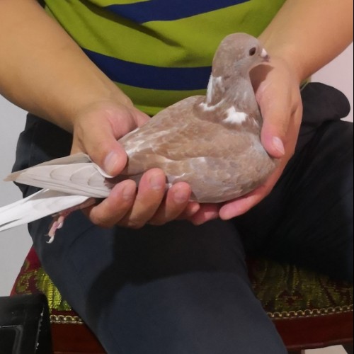 母鸽,灰插白条雌,桑杰士血系。出自比利时赛鸽家罗尼.凡瑞特原舍种鸽。