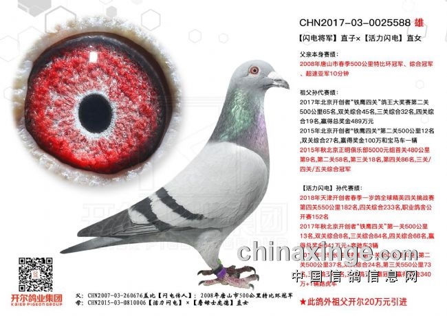 近日,收到青海乾坤兄弟鸽业传来的好消息,他们在2020年春甘肃帝珲公棚比赛中,夺得第三关400公里冠军,在此衷心祝贺他们。这羽冠军小将出自开尔“闪电将军”和“活力闪电”的孙代,一次次成绩证明了盖比闪电血系鸽的实战实力。