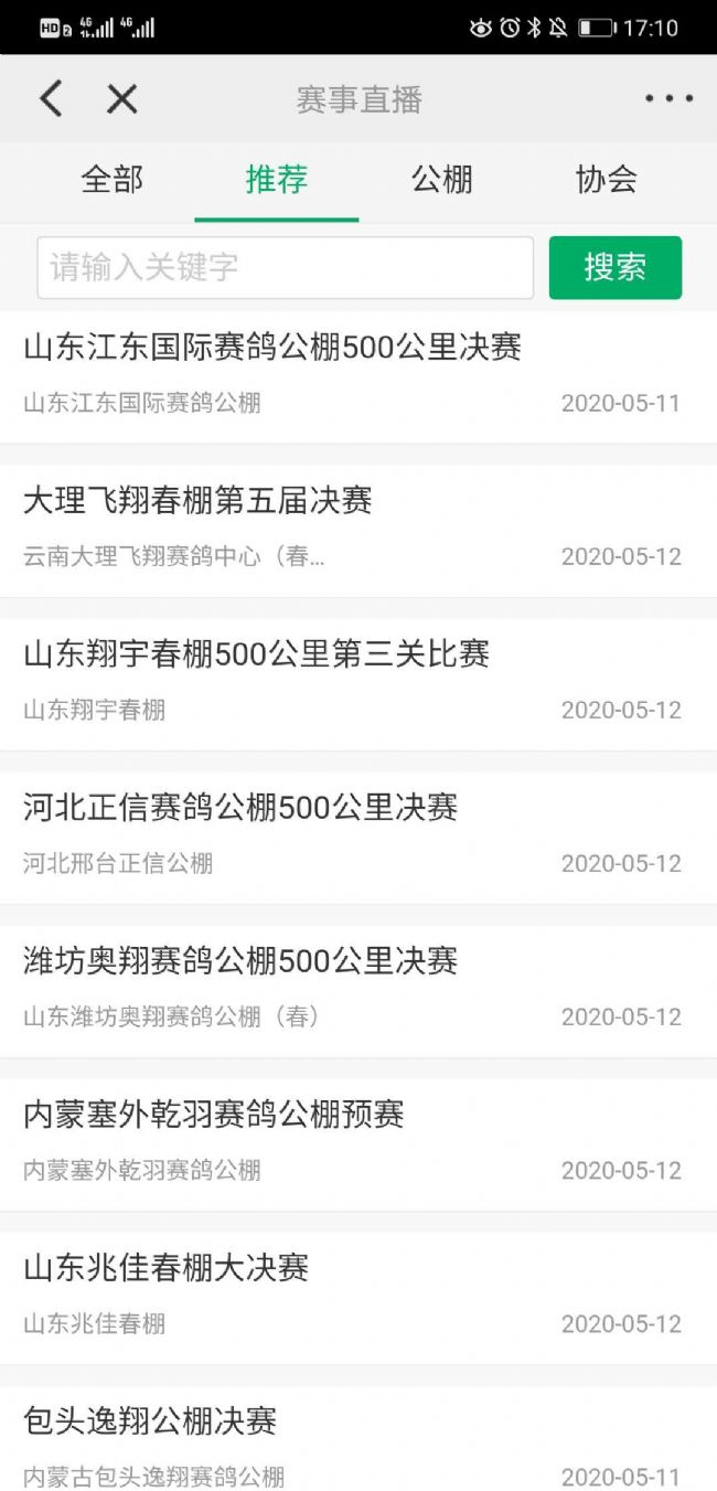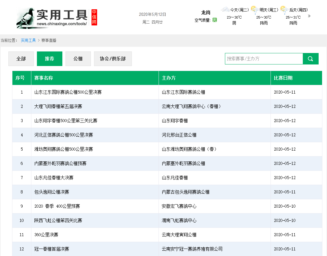 春赛日渐火爆,比赛归巢直播必不可少!春赛期间,鸽友们是否经常遇到关注的几个公棚、协会同时进行训赛,想看归巢数据要到处搜索查找?别急,中信网“赛事直播”工具来帮你!