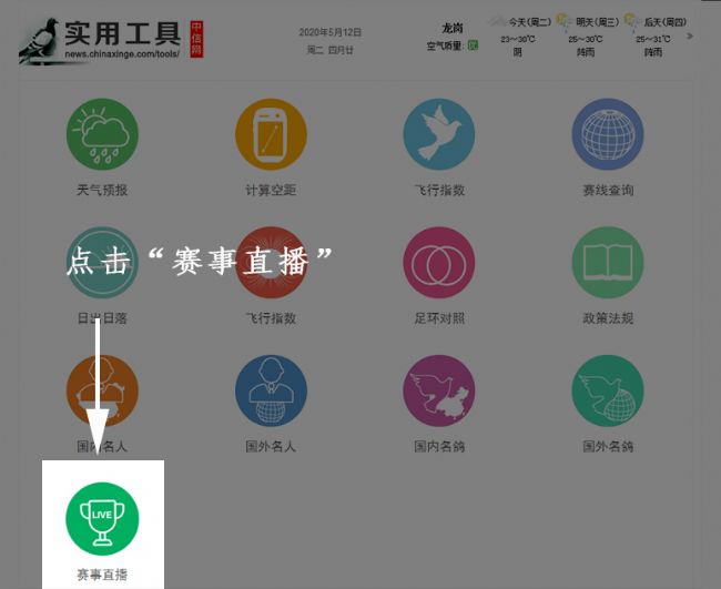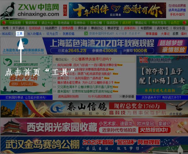 二、pc端入口:中国信鸽信息网首页→工具→赛事直播