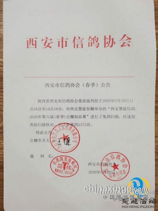 为了感恩鸽界,特赞助支持打加站赛,今天(5月18日),按老规矩集鸽,继续由负责监赛的西安市信鸽协会裁判执裁集鸽,全部程序按照比赛模式进行,要求裁判员们以专业细致的工作,对待赛鸽轻拿轻放,确保每一个赛鸽平安入笼,在前四关赛成功的基础上,继续努力把加站赛打好,打出水平,打出威力慧能春棚品牌,确保比赛的“公平、公正、公开”和透明,为鸽友服务,让鸽友放心。