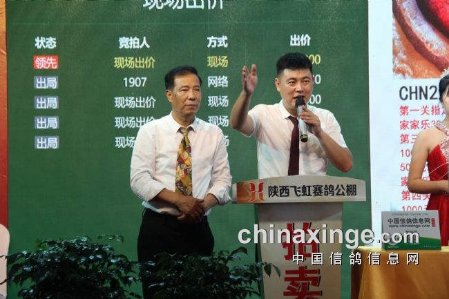 担任本次拍卖会的是中国著名信鸽拍卖肖雄团队:由老牌信鸽拍卖师肖雄主拍,新生代信鸽拍卖师尚飞助拍,尚飞毕业于播音主持人专业,喜欢赛鸽,把信鸽拍卖与专业主持人作风相结合,给人耳目一新,给中国信鸽拍卖行业带来一丝新意,将引来信鸽拍卖创新潮流。