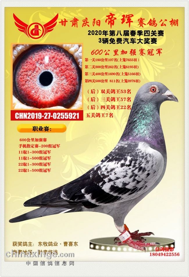 甘肃帝珲加站赛冠军验鸽照