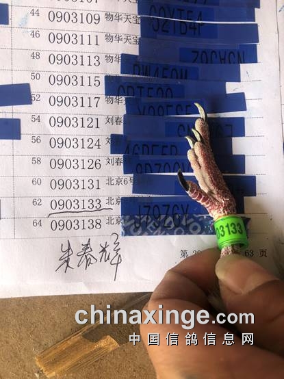 第二名北京6号鸽舍,环号为0903133