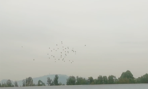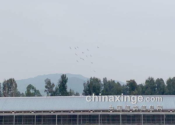 赛鸽如游龙一般飞行,