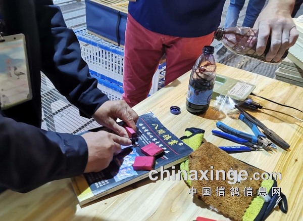 海峡对每一羽上笼鸽认真核对环号