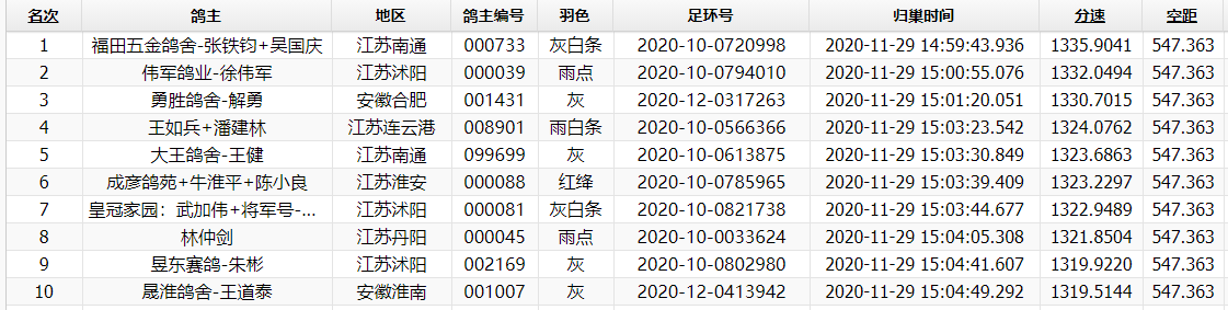 以下是决赛前三名验鸽图: