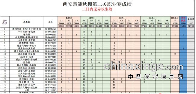 名次 名称 环号 羽色 分速 归巢时间