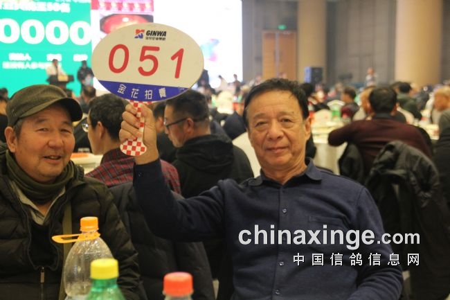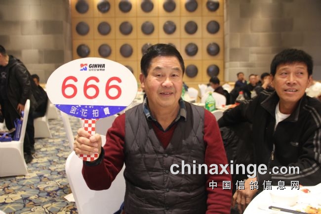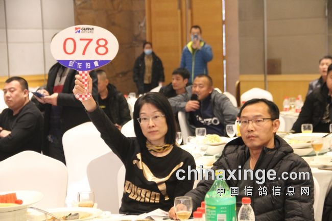 拍卖现场有一个亮点,就是一位女鸽友在频频举牌,而且已经拍了一堆鸽子。其中,很多是她自己的获奖鸽,可见实力非凡。据说,她去年就拍了一堆获奖鸽回去,作育的后代今年就送来打比赛,结果就获得了这么多的鸽王奖。她是广东来的鸽友,把赛鸽当产业在做,看人家成功了。