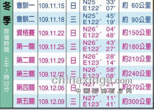 2020年台湾北海冬季赛事已于12月9日告一段落,此次的赛程共五关完赛(不含会讯及资格赛)。本舍(赖继成先生)于新顺利鸽会参赛,由全会12104羽一路过关斩将,进入第一关时4139羽归返,第二关战况严峻,仅334羽归返,8.1%的超低归返率,让赛事变得更为紧张,